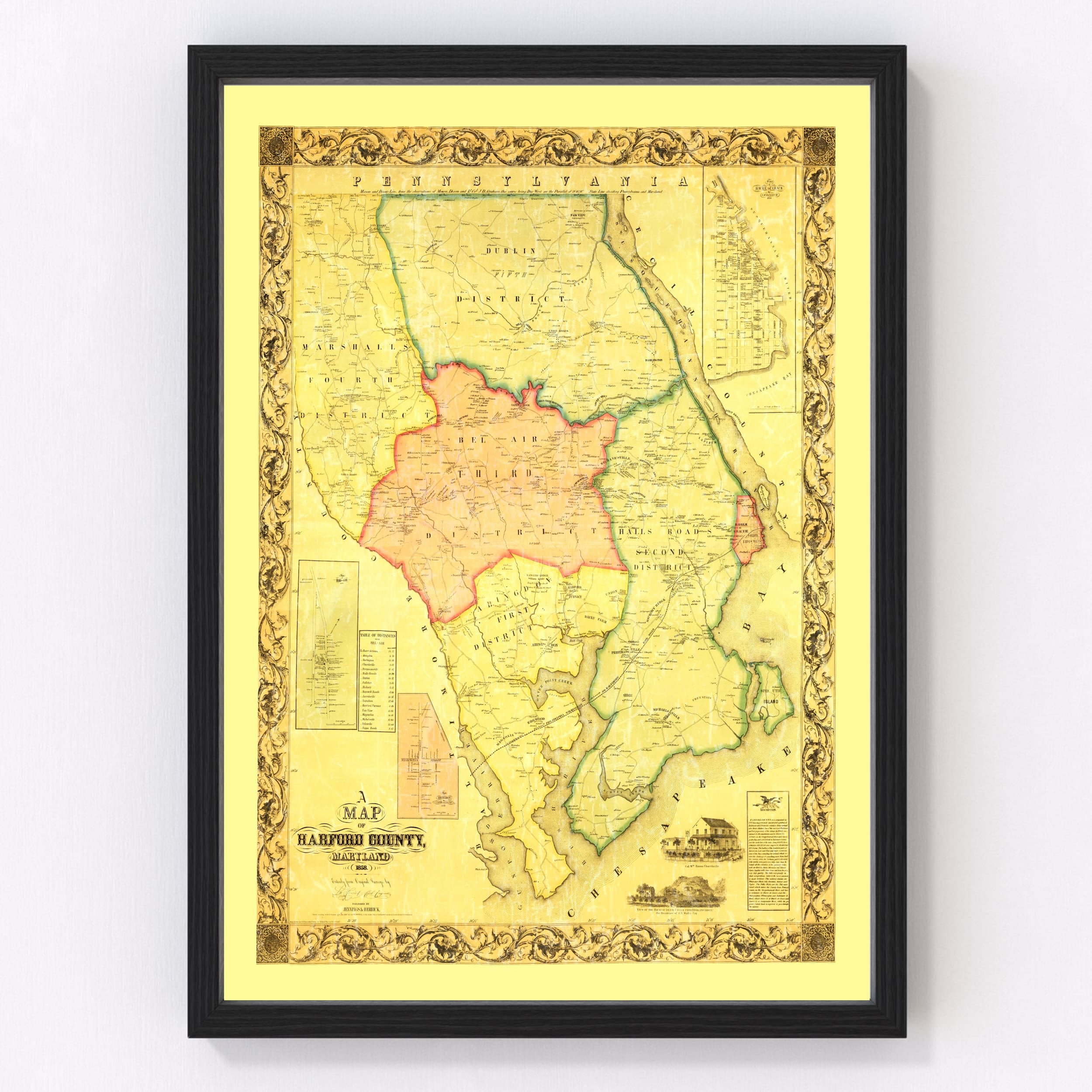 Harford County Maryland Map 1861 Old Map Of Harford County Etsy